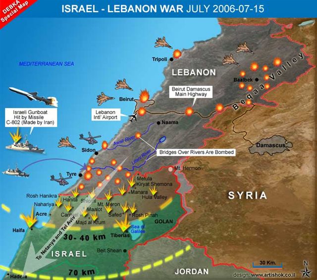 Για πολλούς λόγους ωστόσο αυτό δεν είναι εφικτό. Όχι ότι η κοινωνία των εθνών έχει διάθεση να προβάλλει σοβαρές αντιστάσεις στα αμερικανοβρετανικά σχέδια, αλλά για ποικίλους και μάλλον συγκυριακούς λόγους δεν φαίνεται διατεθειμένη επί του παρόντος να συνδράμει πολύ ενεργά μια τέτοια προσπάθεια. Κάτι τέτοιο θα ήταν όμως απαραίτητο τη στιγμή αυτή που η επιχειρησιακή ικανότητα των ΗΠΑ βρίσκεται σοβαρά αποδυναμωμένη από τον εγκλωβισμό των δυνάμεών τους κυρίως στο κατεχόμενο Ιράκ, πράγμα που επιτείνεται από την εκτίμηση ότι το Ιράν, ακόμα και χωρίς πυρηνική προστασία, είναι ένας στρατιωτικά υπολογίσιμος αντίπαλος (πέρ’ από την οικονομική του ισχύ στις παγκόσμιες ενεργειακές αγορές και τις ισχυρές του τοπικές συμμαχίες, με τη Ρωσία παραδείγματος χάριν…). Ποια στρατηγική κίνηση απομένει λοιπόν στις ΗΠΑ εάν δεν σκοπεύει να εγκαταλείψει το συνολικό σχέδιο; Προφανώς, να κινήσει το Ισραήλ. Βραχυπρόθεσμος στόχος μιας τέτοιας κίνησης θα ήταν να πληγεί η ένοπλη λαϊκή σιιτική οργάνωση της Χεζμπολάχ, θεωρούμενη ως βραχίονας του Ιράν στη ζώνη των άμεσων συμφερόντων του Ισραήλ, η οποία αναδείχθηκε μέσ’ από τον εθνικοαπελευθερωτικό αγώνα του λιβανέζικου λαού ενάντια στην ισραηλινή κατοχή μετά το 1982 και παραμένει μία οργάνωση με τεράστιο κύρος και απήχηση στον αραβομουσουλμανικό κόσμο, με συντονισμένη δράση στο πολιτικό, στο στρατιωτικό και στο κοινωνικό πεδίο και με έναν χαρισματικό ηγέτη που από πολλούς θεωρείται σήμερα η σημαντικότερη πολιτική φυσιογνωμία σε όλη τη Μέση Ανατολή. Αποτινάσσοντας το Ισραήλ την επώδυνη περίσφιξη της Χεζμπολάχ στα βόρεια σύνορά του, και ανακαταλαμβάνοντας την κυριαρχία σε έναν οικονομικά τσακισμένο και κοινωνικά αποδιοργανωμένο Λίβανο, θα κέρδιζε συντριπτικό στρατηγικό πλεονέκτημα έναντι μιας αποδυναμωμένης Συρίας και θα στερούσε από το Ιράν τη δυνατότητα να παρεμβαίνει κατά οιονδήποτε τρόπο στο «εσωτερικό» του παλαιστινιακό πρόβλημα όσο και στις διαρκείς συνοριακές του επιχειρήσεις. Ίσως η επιζητούμενη «τελική λύση» απείχε ακόμη αρκετά βήματα, ωστόσο η επιτυχία ενός τέτοιου σχεδίου θα αύξανε υπολογίσιμα τη δύναμη κρούσης τού άξονα στην ευρύτερη μεσανατολική ζώνη, προπαρασκευάζοντας τις ευκαιρίες για περαιτέρω επεμβάσεις.